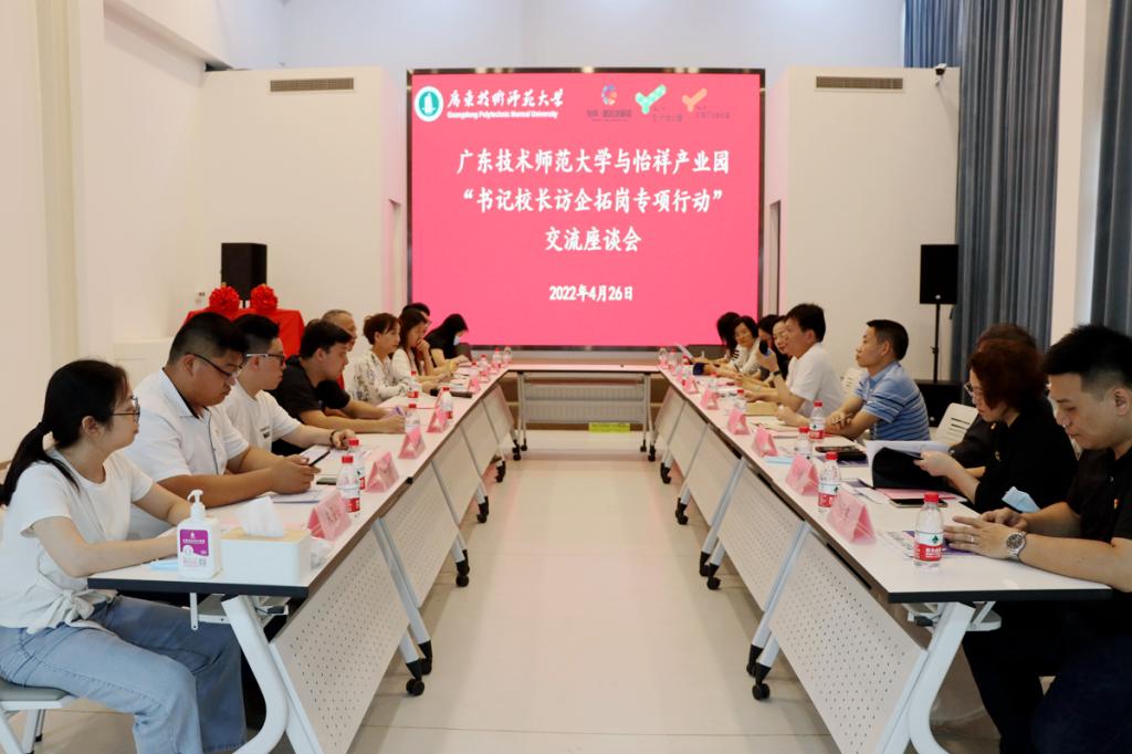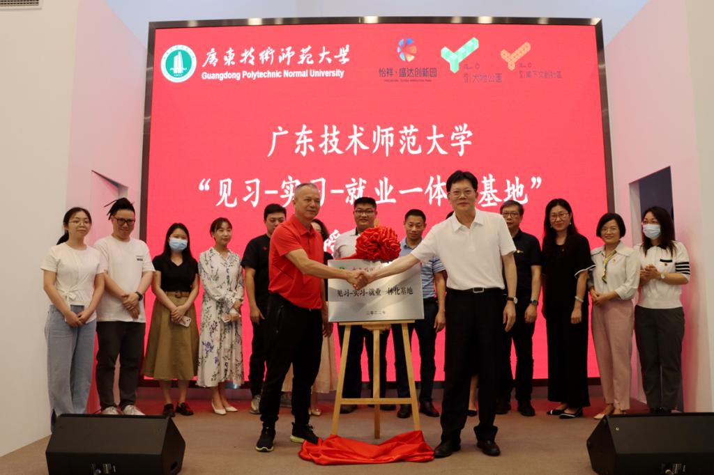 在怡祥产业园,凌靖波在钟桂祥董事长等人陪同下参观了园区展厅,听取了园区负责人对产业园区运营情况及辖内企业用人需求情况的介绍。凌靖波介绍了学校的基本情况及发展历程,并就共同推进双方开展全方位合作提出了四点建议:一是邀请园区企业参与到学校人才培养的各个环节中来;二是鼓励相应学院与企业共同建设研发机构;三是学校愿意为园区企业在员工发展等方面提供相关指导培训服务;四是希望双方能共同构建校企人才共享机制,将校企人才资源打通,共建产教融合长效机制。双方还举行了广东技术师范大学“见习-实习-就业一体化基地”和“实践教学基地”的授牌仪式,美术学院党委与怡祥党支部开展了联合共建活动。会后,凌靖波一行在钟桂祥等人的陪同下走访了广州金川文化有限公司等园区内重点企业。