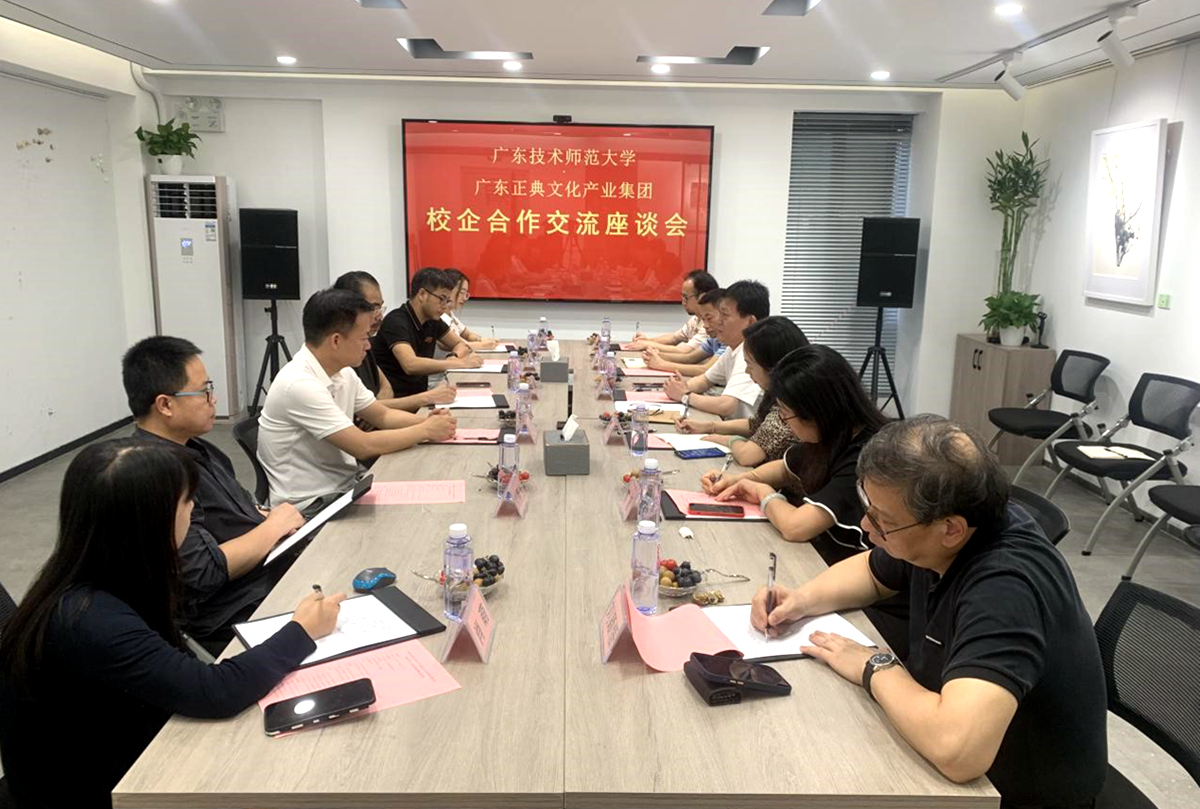 在广东正典文化产业集团有限公司,总经理方旭昌对学校长期以来对正典文化的关心与支持表示感谢,对近年来学校取得的长足进步表示祝贺,希望在专业人才培养、课题研究等方面深化校企合作。凌靖波强调要狠抓落实,注重实效。首先要搭建产学研平台,提供人才智力支撑;其次要培养高质量发展人才,推动事业、产业融合发展;最后要推进学术研究,实现成果转化。