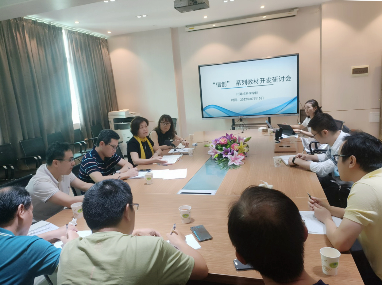 7月15日上午,校长戴青云参加计算机科学学院“信创”系列教材开发研讨会。学院领导班子、系主任、专业负责人以及骨干教师近20人通过线上线下形式参加了本次研讨会。
